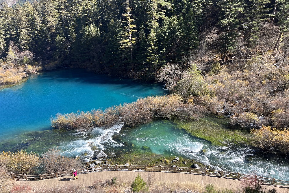 在以“彩池、瀑布、滩流、雪山、古寺”五绝闻名于世的黄龙景区,层林尽染的山野,奔腾不息的瀑布,令人回味的美食,让大家仿佛置身于童话世界。