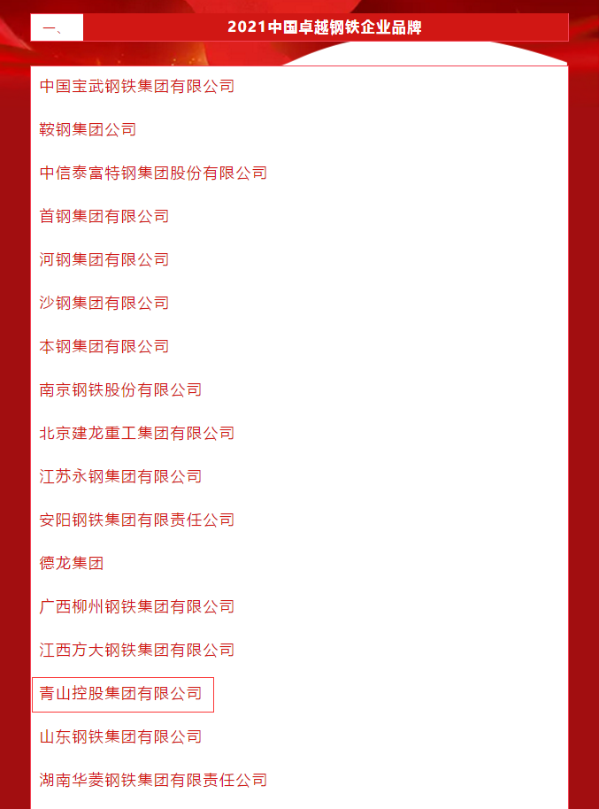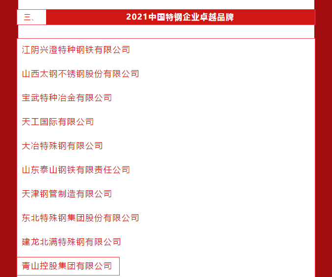 5月10日,第5个中国品牌日,中国冶金报社发布了2021年度中国钢铁品牌榜。壹号娱乐-com控股集团有限公司荣膺“2021中国卓越钢铁企业品牌” “2021中国特钢企业卓越品牌”。
