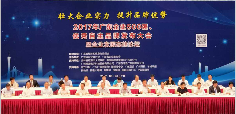 广青科技荣列2017广东企业500强第113位、 制造业100强第37位