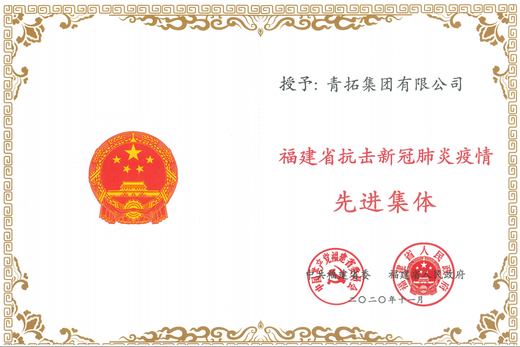 捷报频传!青拓集团获评福建省抗击新冠肺炎疫情先进集体