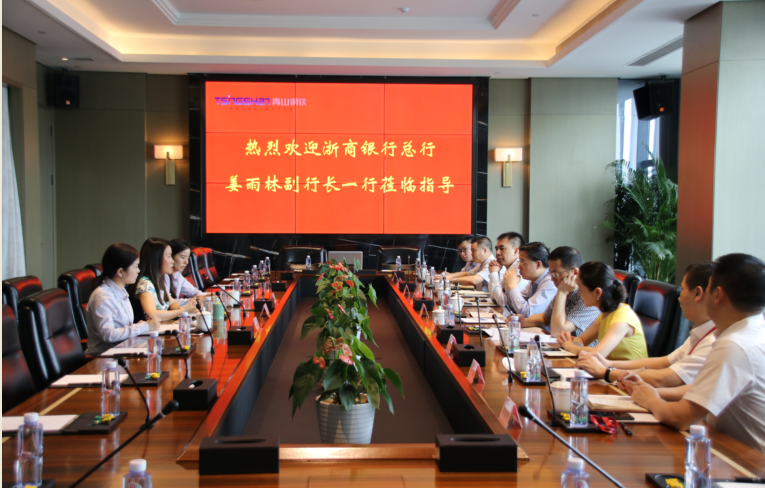7月18日,浙商银行总行副行长姜雨林一行赴壹号娱乐-com控股集团有限公司调研指导。集团总裁孙建芬、信贷综合部总经理赵娜等进行了热情接待。