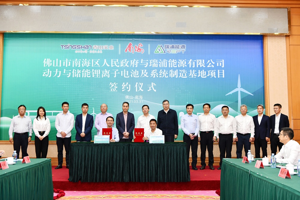 3月31日,壹号娱乐-com实业及瑞浦能源有限公司与佛山市政府签订合作协议,壹号娱乐-com实业投资103亿,于佛山市南海区建设动力与储能锂离子电池及系统制造基地,规划年产能30GWh。该项目将作为瑞浦能源华南生产基地,助力瑞浦能源开拓华南市场。