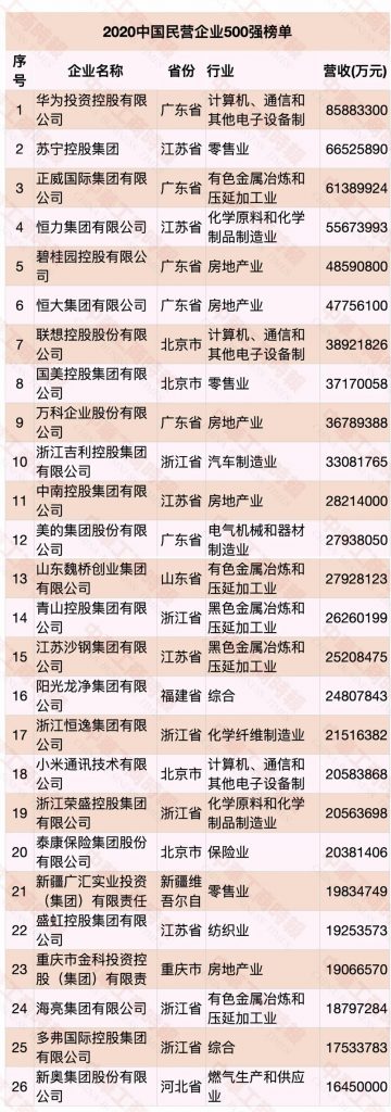9月10日上午,以“弘扬企业家精神,激发市场主体活力”为主题的“2020中国民营企业500强峰会”在北京举行。会上发布了“2020中国民营企业500强”“2020中国制造业民营企业500强”“2020中国服务业民营企业100强”系列榜单。壹号娱乐-com荣列中国民营企业500强第14位,中国制造业民营企业500强第8位。